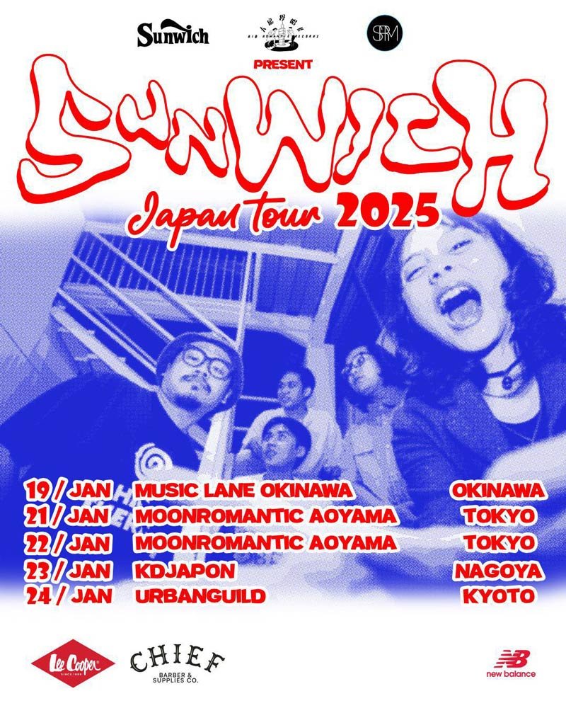 Band Indiepop asal Tanjung Priok, Jakarta Utara, Sunwich memulai tahun 2025 dengan Kabar Bahagia. Mereka akan menjalankan Tur ke beberapa kota di Jepang. Rencana ini dimulai dari undangan tampil di Music Lane Festival di Okinawa. Melalui SRM Bookings & Services, Booking Agent mereka, Sunwich berhasil mendapatkan slot di Festival tersebut, setelah Ryuji Noda, Direktur Festival Music Lane menerima materi Album pertama mereka, Apophenia tahun lalu.