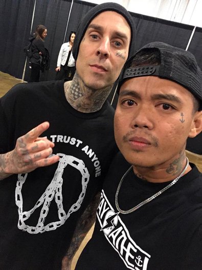 Puncaknya? Skill tattoo artist-nya yang bawa dia ke Amerika, dapat undangan ke acara MUSINK yang dihelat sama idola masa kecilnya: Travis Barker (Blink-182). Dan boom! Kesempatan langka itu datang—Fandem bisa ngobrol, bercanda, dan foto bareng langsung sama Travis Barker. Sebuah momen yang nggak pernah dia bayangin saat pinjam kaset di bangku SMP.